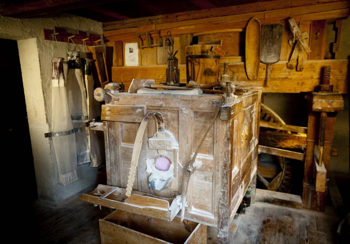 In 1991, Peter Pichler fulfilled a long-awaited wish. Under the expert guidance of Ernst Rössler, the current, fully functional "adventure mill" was built from old mills from the surrounding area. Most of the original components were used. The mill wheel was newly built by Mr. Rössler.