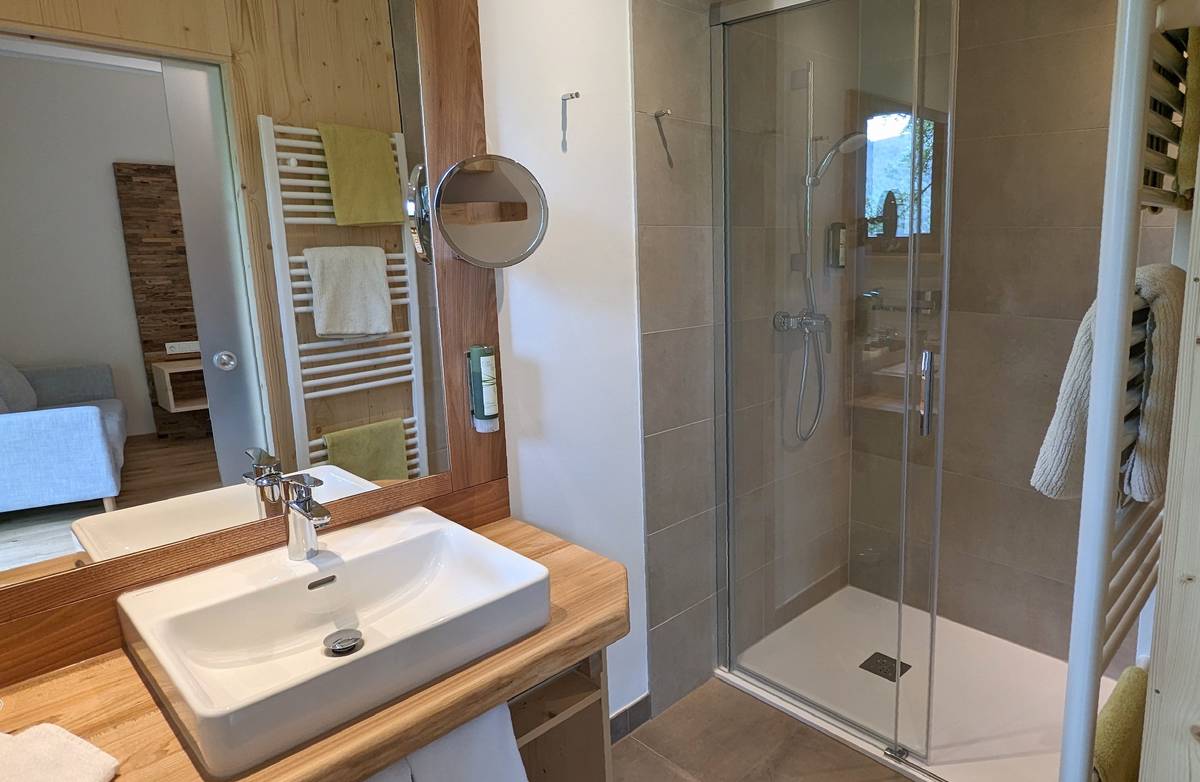 The two newly renovated, quiet comfort rooms close to the stream impress with their modern, yet natural charm.